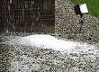 3/4" _ Threshold size for damage to roil roofing and deteriorated asphalt composition shingles, especially where unsupported. Painted wood surfaces, deteriorated gray-black slates (especially at comers) chipped. Most aluminum vents, flashings, valleys, siding dented.